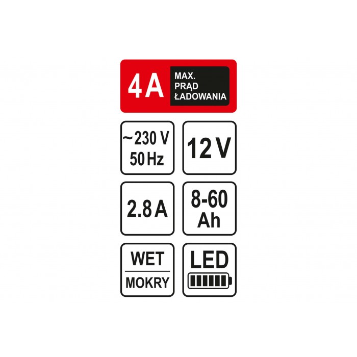 - Емкость заряжаемого аккумулятора - 8-60 Ач