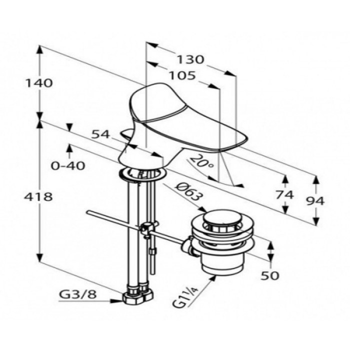 Висота виливу 74 ммДовжина підводки 418 ммДонний клапан металУправління одноважільнийКонструкція традиційнаДовжина виливу 105 ммПоворотний вилив немаєВисота змішувача 140 ммКартридж керамічнийТип підведення гнучкі підвод...