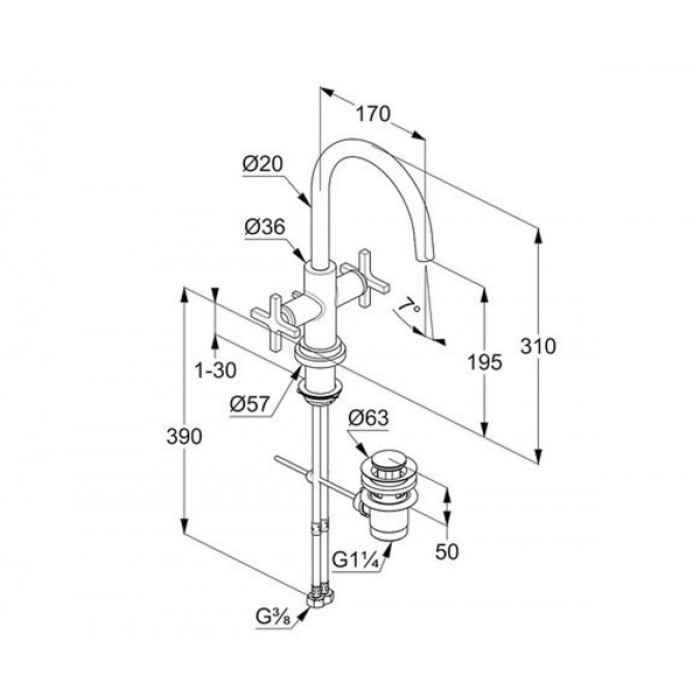 Висота змішувача 310 мм