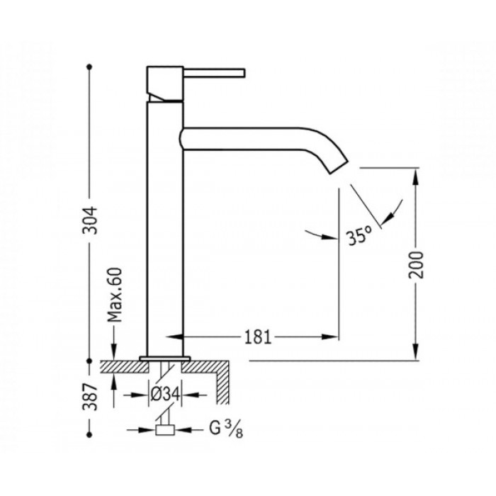 Смеситель для умывальника высокий TRES STUDY 26230701KM